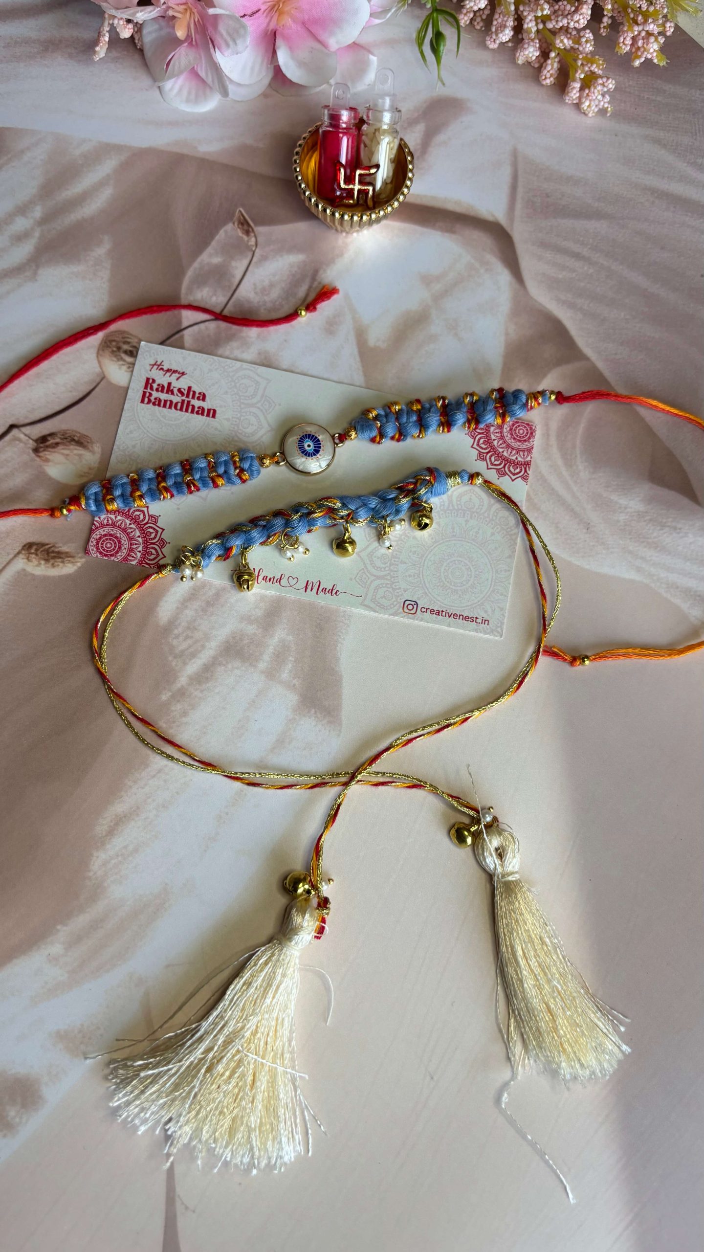 Each Rakhi is thoughtfully handcrafted using high-quality, eco-friendly materials: