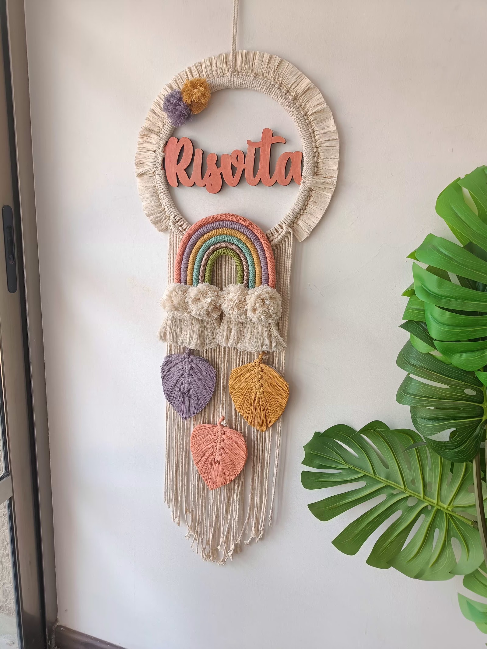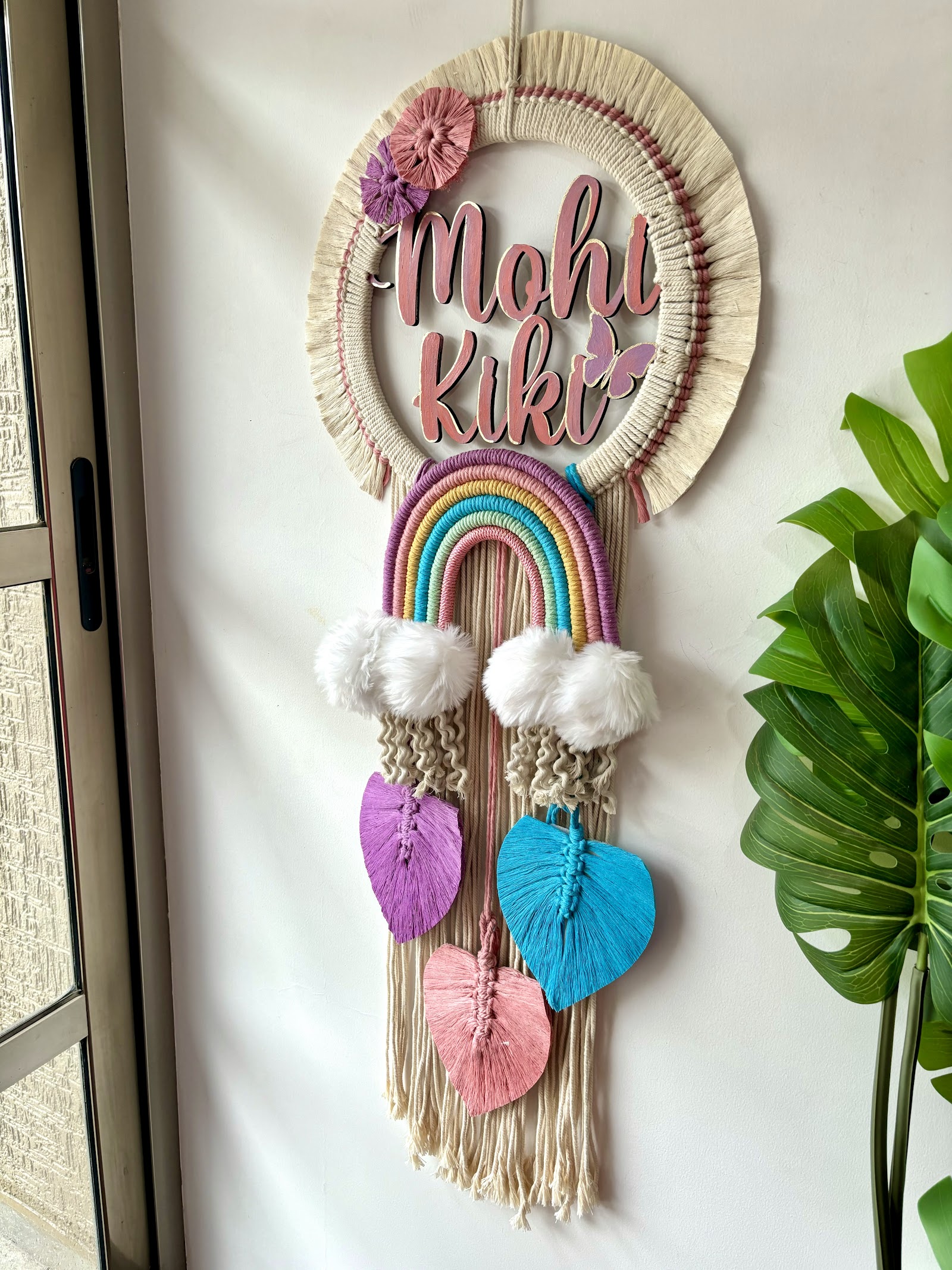 Our Personalised Rainbow Name Dream Catcher is lovingly handcrafted to bring warmth, color, and charm to your child’s space. Designed with premium macrame knots, soft cotton fringes, and vibrant rainbow elements, each piece is customised with your child’s name to make it truly special.