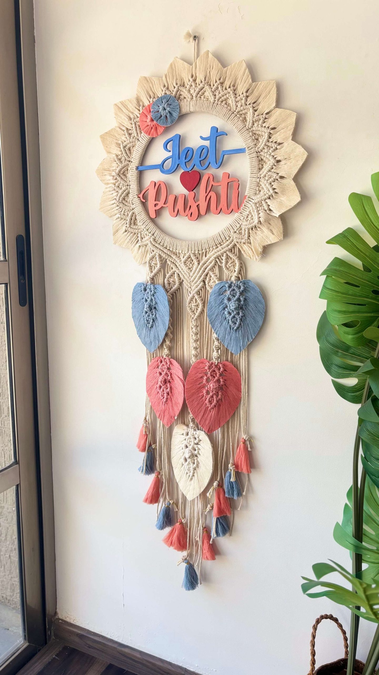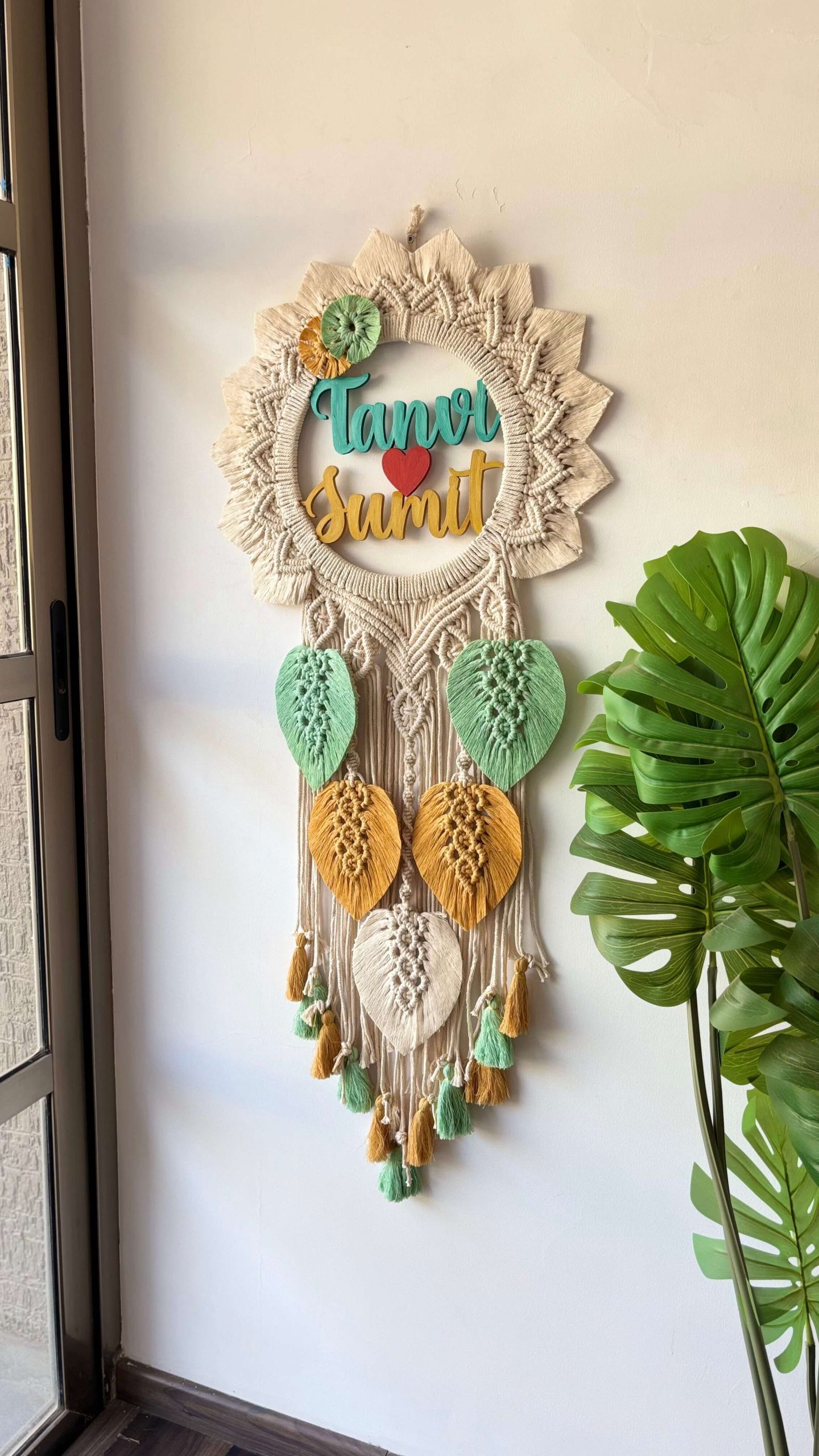 A beautifully handcrafted mandala-themed wall hanging personalized with couple names. Designed in elegant earthy tones, this statement piece adds warmth, positivity, and love to your space. Perfect for bedrooms, living rooms, anniversaries, and housewarming gifts.