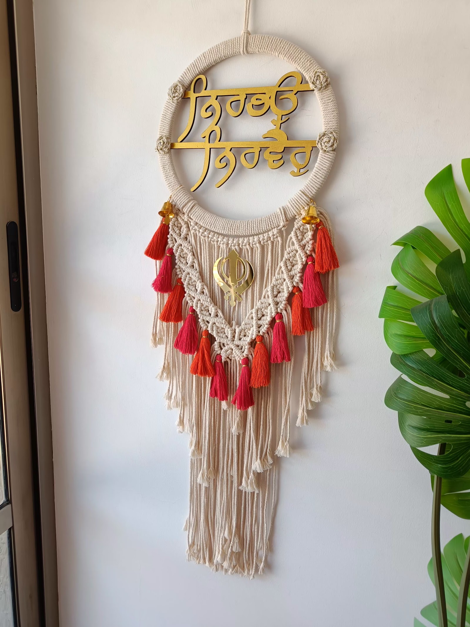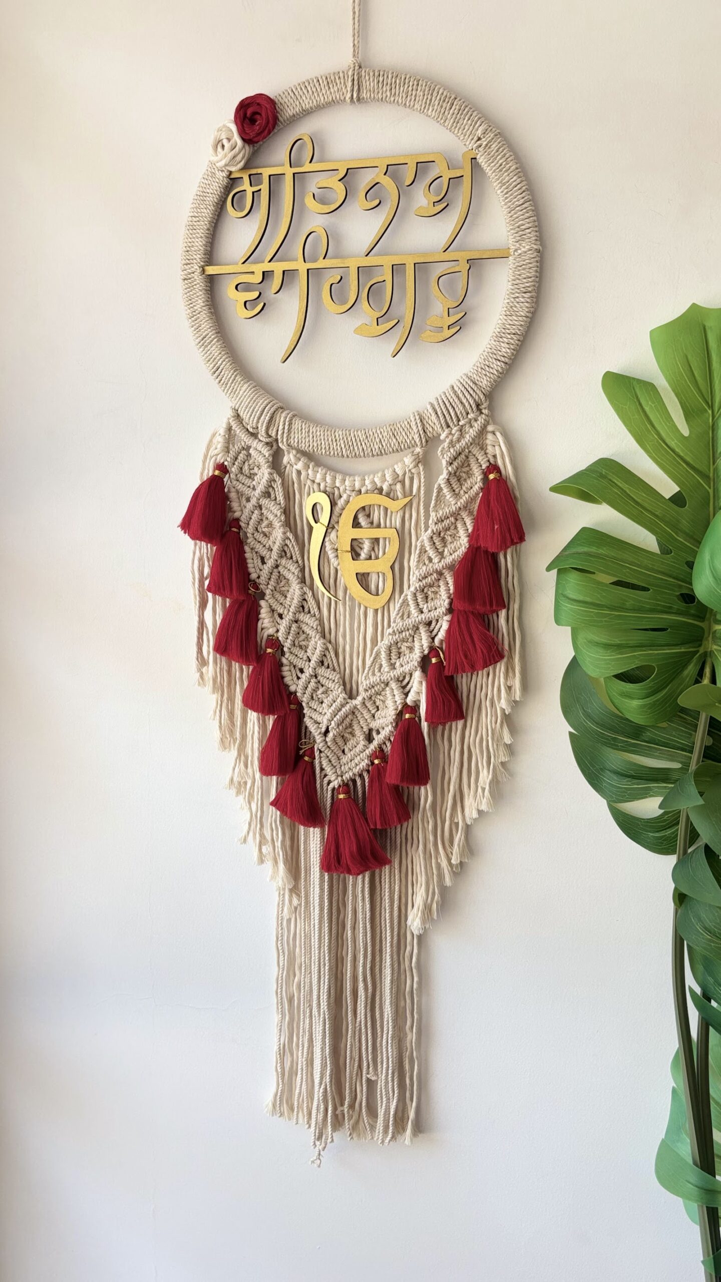 Add a touch of positivity and elegance to your space with our handcrafted Divine Dream Catcher. Thoughtfully designed using intricate macrame knots, this beautiful wall hanging features a personalised name cutout along with delicate tassels and spiritual charm details. ✨ Highlights • Personalised name or word option • Handmade with premium macrame cotton cord • Elegant tassels and charm detailing • Lightweight and easy to hang • Perfect for home décor or gifting Every dream catcher is crafted with love, ensuring a beautiful blend of tradition, art, and personal touch.