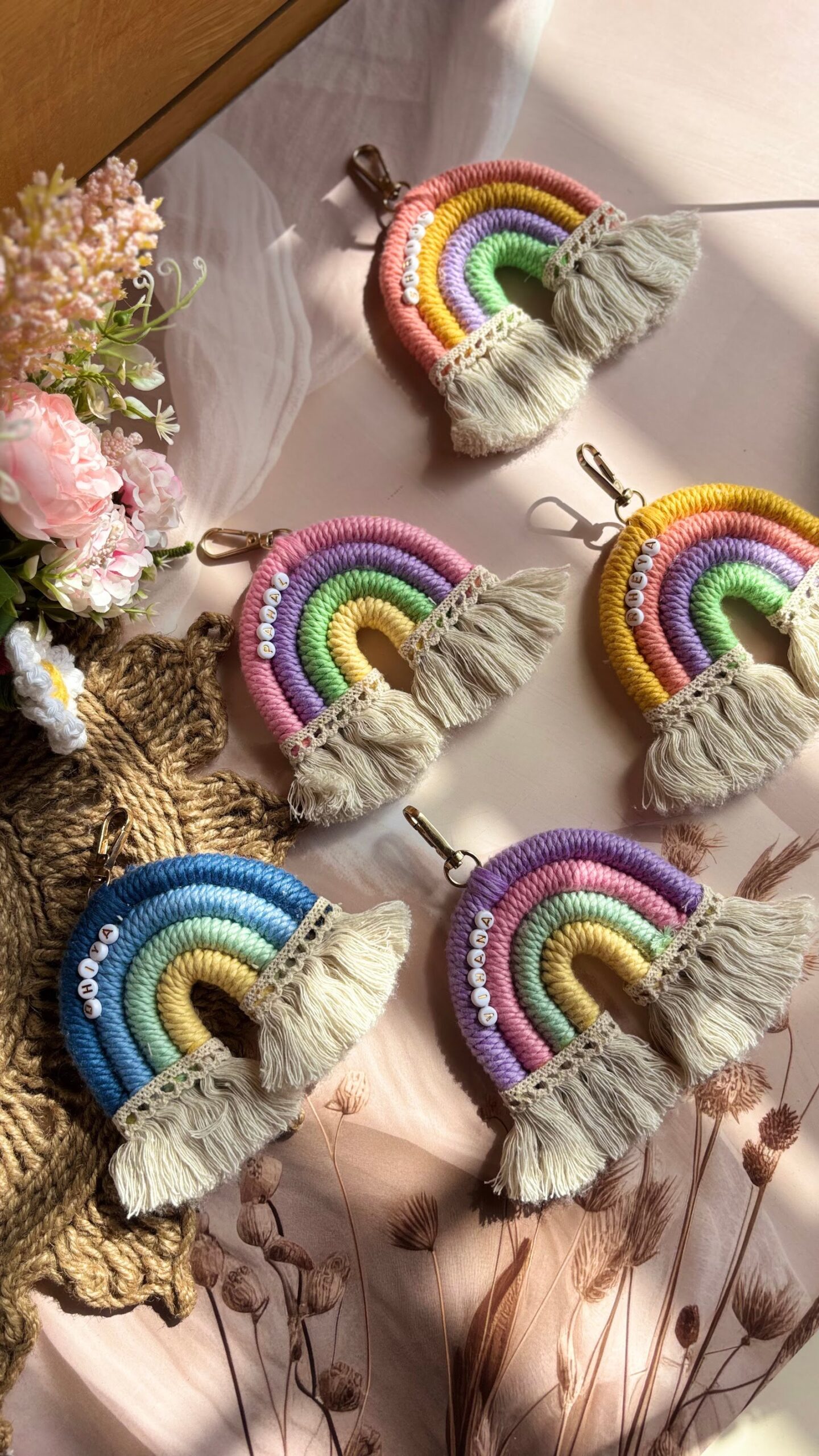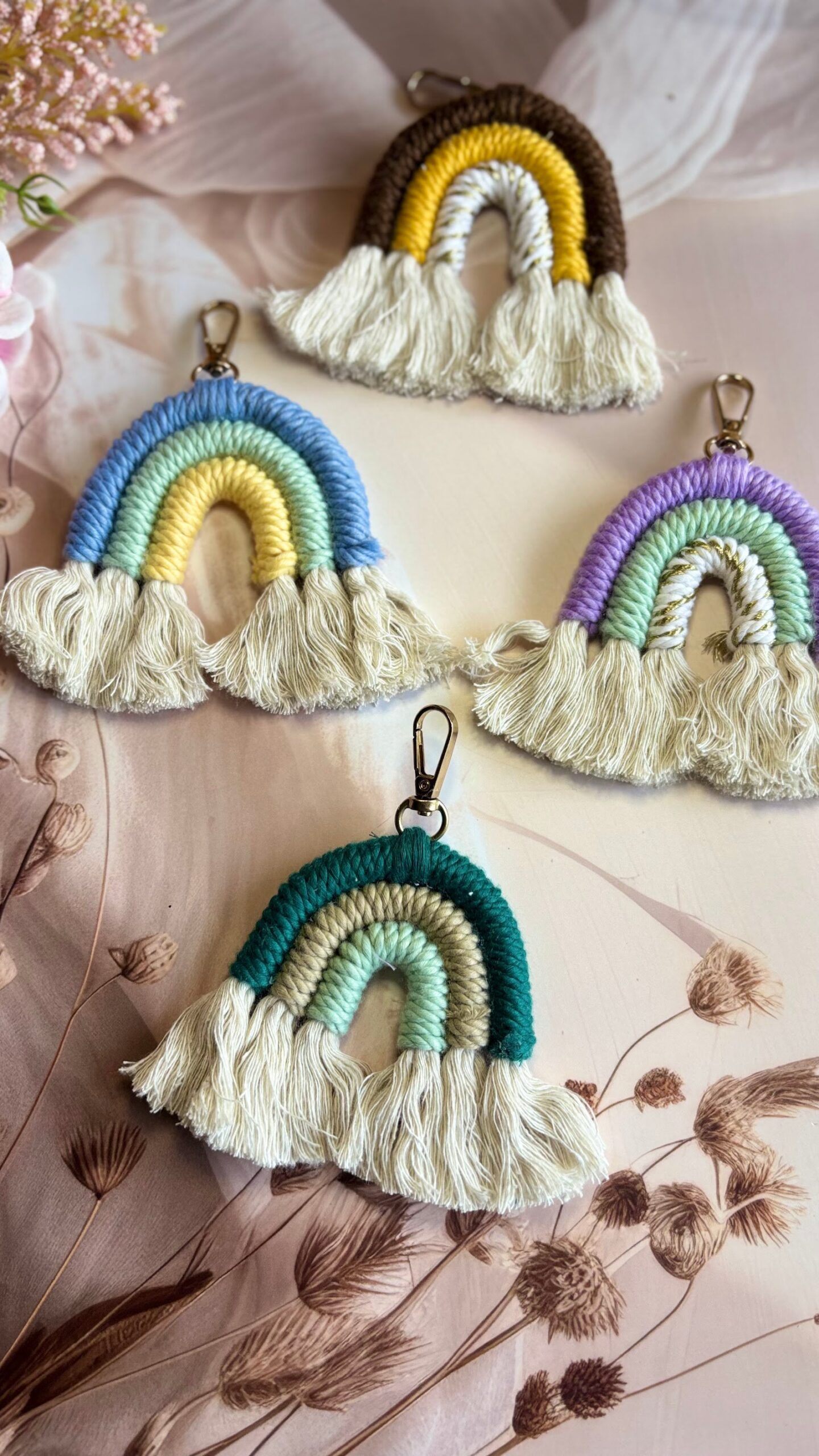 Perfect as return gifts, kids’ accessories, or thoughtful personalised keepsakes, these rainbow charms bring a cheerful vibe wherever they go 💖 • Handmade macrame rainbow keychains