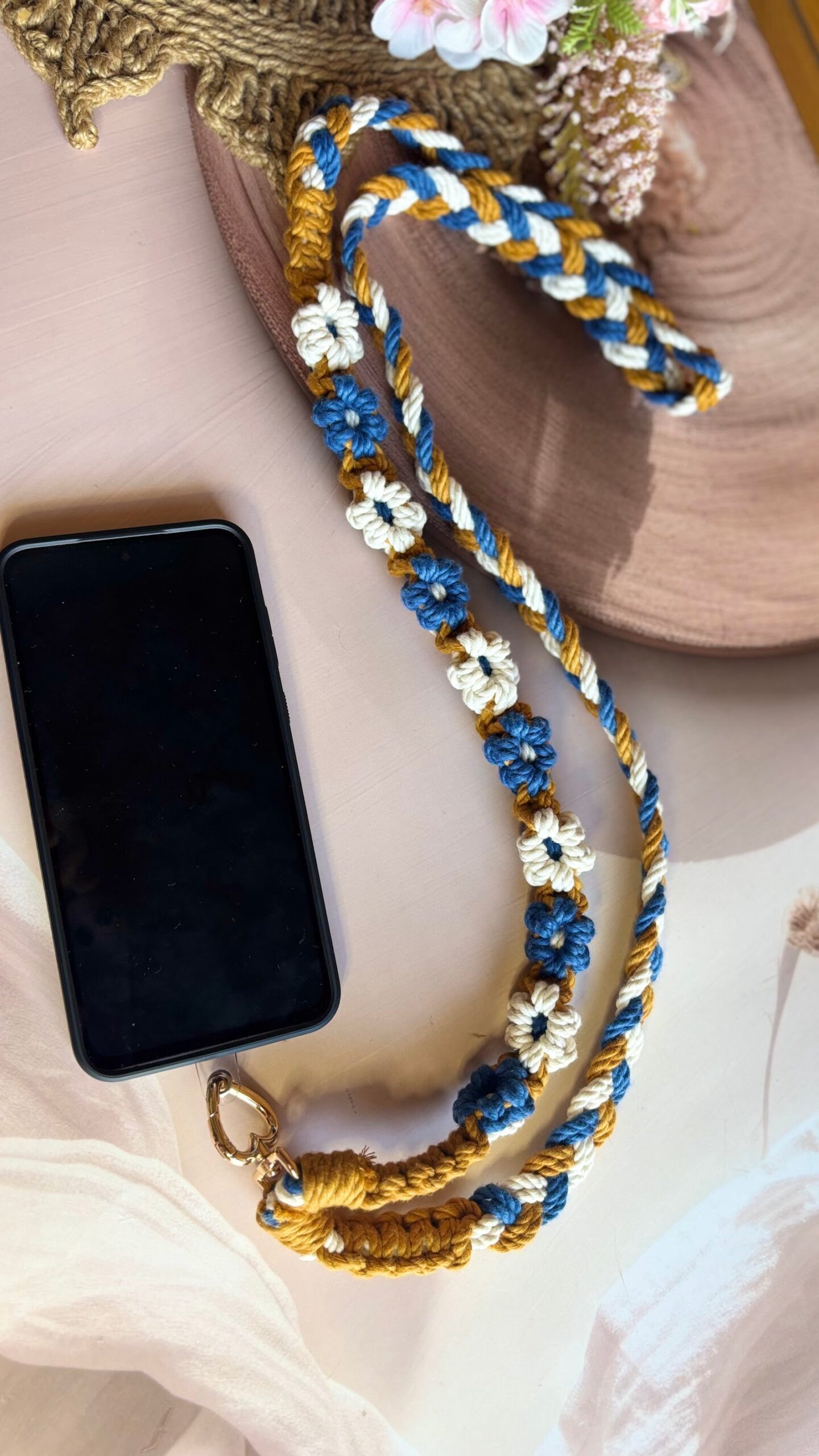 Handcrafted using macramé techniques, this wrist keychain features delicate daisy knots in soft, vibrant colours. Designed for comfort and convenience, it easily slips onto your wrist, making it perfect for carrying keys while on the go.